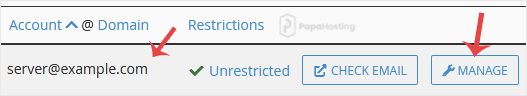 4. If your email address is server@example.com, click on Manage next to it.
